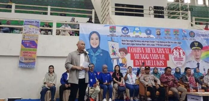 LUBUK LINGGAU. Wali Kota Lubuk Linggau, H Rachmat Hidayat membuka secara resmi kegiatan Lomba Mewarnai Menggambar dan Melukis Tingkat Pelajar dalam rangka memperingati HUT Bhayangkara, Hari Bhakti Adhyaksa dan Hari Anak Nasional di Taman Olahraga Megang (TOM) Kota Lubuk Linggau, Sabtu (26/7/2025)